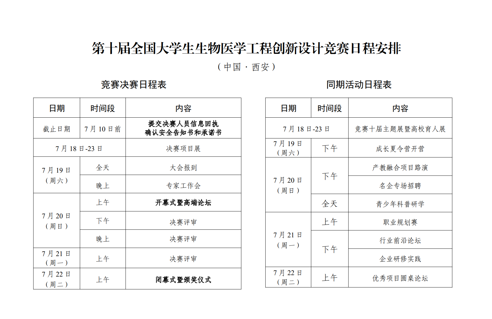 第十届全国大学生生物医学工程创新设计竞赛日程安排
